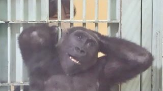 飼育員さんにくすぐられ、嬉しそうに笑ってるキンタロウ⭐️ゴリラ Gorilla【京都市動物園】Kintaro smiles happily as the zookeeper tickles him. 2024/10/27 くすぐられ