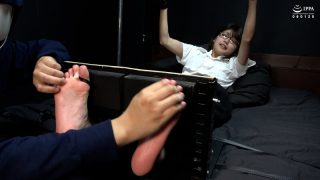 足裏弱点のはるのちゃんに足枷くすぐり!初めから怯えるはるのちゃんに容赦なくくすぐったい道具が襲い掛かります!初めの手でのくすぐりは、特に弱い足指の間を責めた時の反応に注目!少し慣れてきたと思ったらすかさずほぐして再度感度を上げていきます。そしてやっぱりブラシに弱いはるのちゃん。ヘッドマッサージャー2つ固定+指くすぐりも受けて既に息が上がっています。そして仕上げの手袋くすぐり!足裏に当てた時に首を横に振る怯えた表情を堪能した後は、今日1番の嬌声と身体の跳ねを味わえます!その後も楽しみながら擦り続け、最後には舌を出してぐったりグロッキー!スーツ姿の女性とは思えないぐったりっぷりをお楽しみ下さい!
